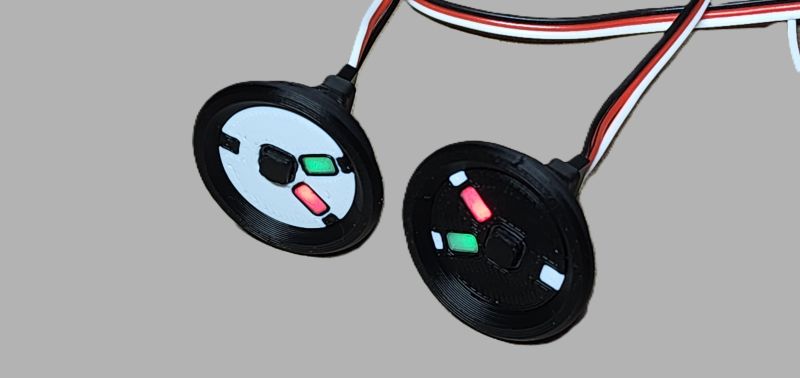 Configured for Dual Green-Red LEDs out of the box. Change to dual Green-only LEDs with two trace cuts. Change to a single Green-Red LED with two trace cuts. See 3D-Printed Fascia Controller under Instruction Sheets on the Downloads page for the details.